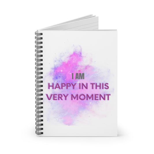 I AM HAPPY IN THIS VERY MOMENT - Affirmation Spiral Notebook - Ruled Line - With Document Pocket