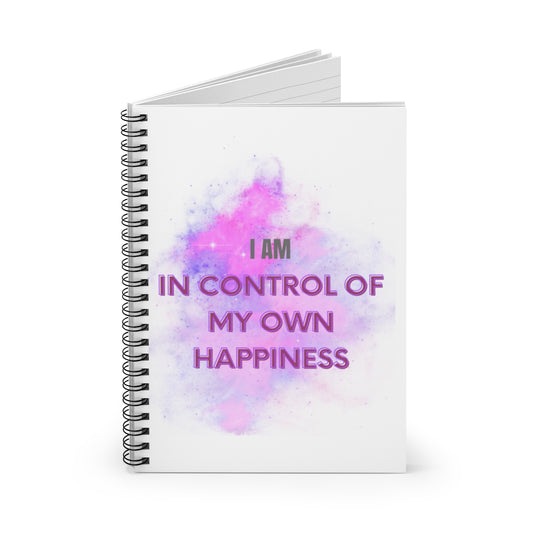 I AM IN CONTROL OF MY OWN HAPPINESS - Affirmation Spiral Notebook - Ruled Line - With Document Pocket