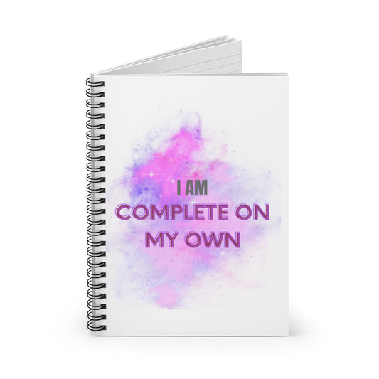 I AM COMPLETE ON MY OWN - Affirmation Spiral Notebook - Ruled Line - With Document Pocket