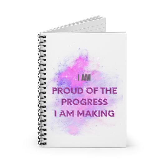 I AM PROUD OF THE PROGRESS I AM MAKING - Affirmation Spiral Notebook - Ruled Line - With Document Pocket